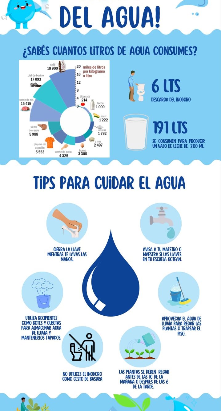 ¿Sabes cuánta agua consumes? Es esencial ser consciente de nuestro consumo diario y tomar medidas para cuidar este recurso vital. Aquí algunas acciones que todos podemos realizar a diario: Cerrar grifos correctamente: Asegúrate de cerrar bien los grifos para evitar fugas. Reparar fugas: No ignores las fugas; repáralas tan pronto como sea posible. Duchas más cortas: Reduzcamos el tiempo en la ducha para ahorrar agua. Recoger agua de lluvia: Utiliza recipientes para recolectar agua de lluvia y úsala para regar plantas. No dejar correr el agua: Cierra el grifo mientras lavas platos, te cepillas los dientes o te enjabonas las manos. Optar por electrodomésticos eficientes: Elige electrodomésticos que sean eficientes en el uso del agua. Pequeñas acciones suman para preservar este recurso esencial. ¡Cuidemos el agua juntos! 💧🌍