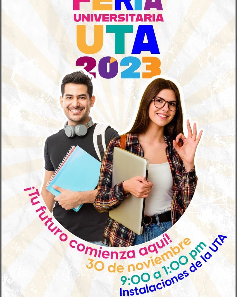 ¡No dejes pasar esta oportunidad única! Te invitamos a asistir a la Feria Universitaria UTA 2023. Explora de cerca las emocionantes opciones educativas que la Universidad Tecnológica de Aguascalientes tiene para ofrecer. Este evento es tu primer paso hacia la realización de tus metas académicas. Descubre programas innovadores, servicios estudiantiles y todo lo que necesitas para comenzar tu viaje educativo. La fecha y más detalles del evento serán anunciados próximamente. ¡Acompáñanos y sé parte de la comunidad