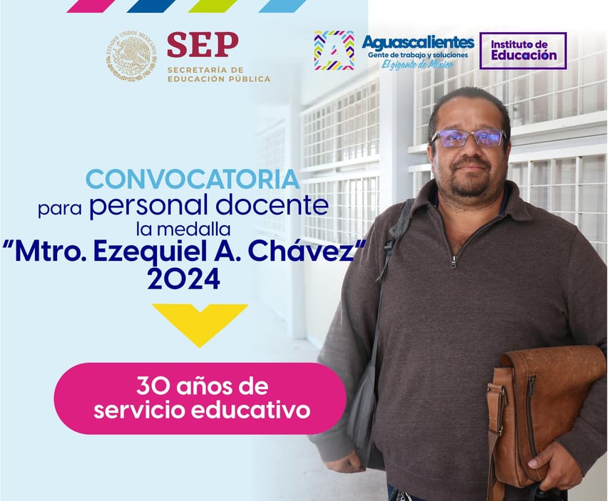 El Instituto de Educación de Aguascalientes se enorgullece en lanzar la convocatoria para la Medalla Maestro Ezequiel A. Chávez 2024, un reconocimiento que celebra la excelencia y el compromiso del personal docente con la educación. Si eres un maestro o maestra que ha demostrado un desempeño sobresaliente, una dedicación ejemplar y una contribución significativa al desarrollo educativo de Aguascalientes, te invitamos a postularte para este prestigioso galardón. Consulta los requisitos y procedimientos de postulación en la convocatoria oficial y participa en la celebración de los logros y el talento de nuestro valioso cuerpo docente. ¡Demostremos juntos el impacto positivo que los maestros pueden tener en la sociedad y en la vida de nuestros estudiantes!