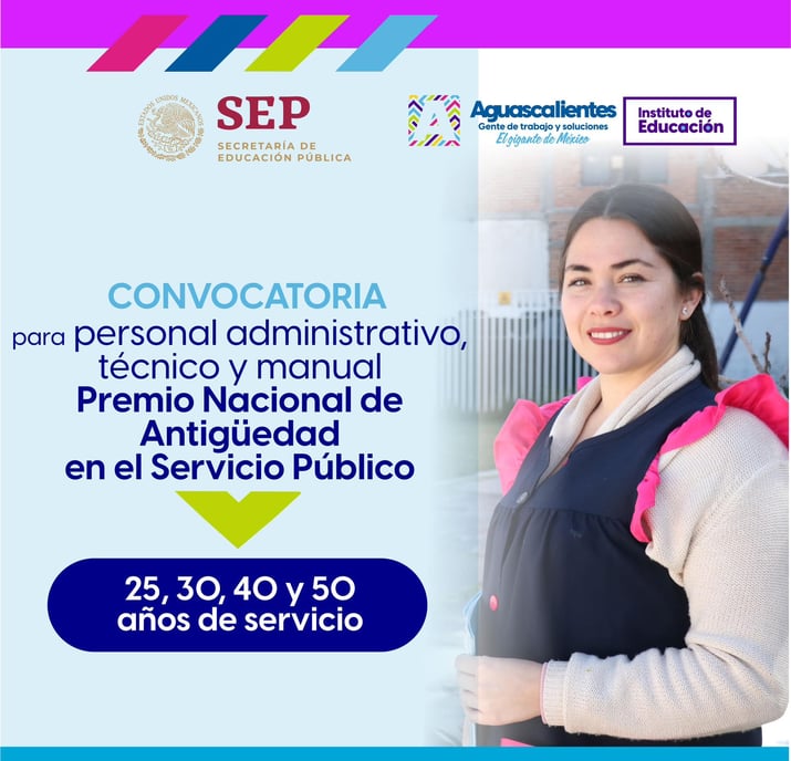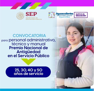El Instituto de Educación de Aguascalientes se complace en lanzar la convocatoria para el Premio Nacional de Antigüedad en el Servicio Público 2024, dirigido al personal administrativo, técnico y manual que ha dedicado 25, 30, 40 o 50 años de su vida al servicio público. Este premio busca reconocer la inquebrantable dedicación y el compromiso de aquellos que han contribuido de manera excepcional al desarrollo y funcionamiento de nuestras instituciones a lo largo de las décadas. Si eres parte de este valioso grupo, te invitamos cordialmente a postularte y compartir tu valiosa experiencia. Consulta los requisitos y procedimientos de postulación en la convocatoria oficial y únete a nosotros en la celebración de tu trayectoria ejemplar y tu impacto duradero en la comunidad. ¡Tu labor merece ser reconocida y celebrada!