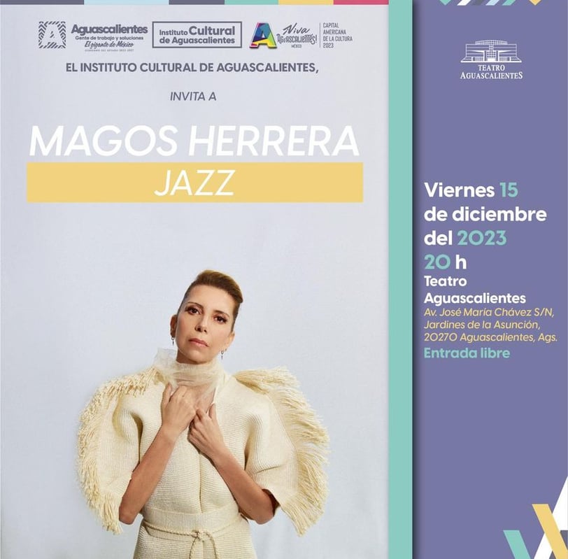 Vive una experiencia única esta noche con el encanto del jazz en el Teatro Aguascalientes. Acompáñanos a disfrutar del excepcional concierto de Magos Herrera a las 20 h. 🌟👩🏼🎷 Déjate llevar por la magia de su voz y la sutileza del jazz en una velada inolvidable. La entrada es libre, ¡no te pierdas la oportunidad de sumergirte en este universo musical cautivador! 🎤