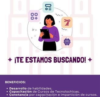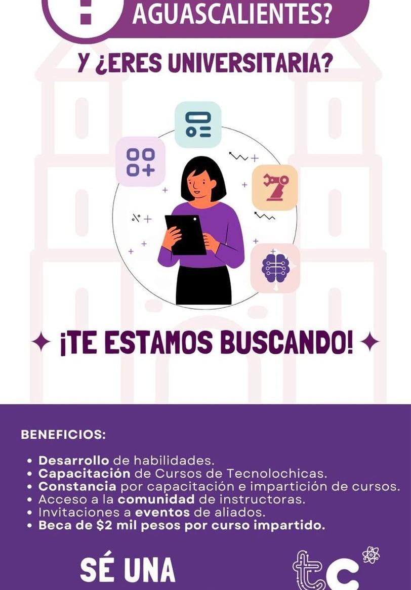 Si eres mujer y estudiante de educación superior, ¡Tecnolochicas México está en búsqueda de tu talento! 👩🏻💻 👉 Conviértete en instructora de cursos de programación para alumnas de secundaria y bachillerato. ¡Las participantes podrán obtener una beca! 🤩 👉🏼 Regístrate aquí: Formulario de Inscripción No dejes pasar esta oportunidad de compartir tus conocimientos y ser parte de un impacto positivo en la próxima generación de mujeres en tecnología. ¡Inscríbete y marca la diferencia! 🚀💻