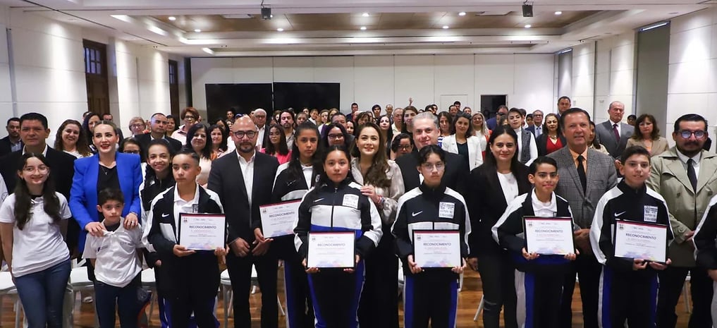 La gobernadora Tere Jiménez y la Fundación BBVA han destacado el esfuerzo de ocho estudiantes sobresalientes que obtuvieron los mejores promedios en la Olimpiada del Conocimiento Infantil 2024. Más de 26,800 alumnos de sexto grado de primaria, tanto de escuelas públicas como privadas en el estado, participaron en esta competencia. Los ganadores recibirán becas mensuales de 2,000 pesos durante toda su secundaria, con la posibilidad de extenderlas hasta la universidad si mantienen su rendimiento académico. La gobernadora Jiménez elogió a los estudiantes por su dedicación y talento, instándolos a seguir esforzándose y persiguiendo sus sueños. Aguascalientes enfatiza la educación como clave para abrir oportunidades globales, subrayó Jiménez, destacando la importancia de preparar a los jóvenes para competir a nivel internacional. Víctor Manuel Revilla Martínez de BBVA elogió la colaboración con la gobernadora en apoyo a la educación, mientras que Luis Enrique Gutiérrez Reynoso del Instituto de Educación de Aguascalientes agradeció el compromiso de Jiménez con la calidad educativa. Camila Gutiérrez López, hablando en nombre de los estudiantes ganadores, expresó gratitud por el apoyo y el reconocimiento. Los demás estudiantes premiados son Ana Celeste Vargas Velez, Regina Maldonado Carrillo, Aarón Lacayo Esparza, Saúl Itzae Hernández Pérez, Ximena Vendrell de Loera, Renata Elizabeth Martínez Medrano y José Reyes Díaz de León. El evento contó con la presencia de líderes educativos y representantes de instituciones comprometidas con el desarrollo educativo en Aguascalientes.