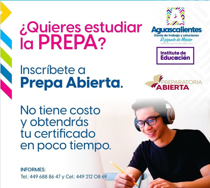 ¡Descubre la flexibilidad de la Prepa Abierta! Las inscripciones están abiertas durante todo el año, sin costo alguno, y no hay límite de edad para ingresar. Si buscas una modalidad educativa que se adapte a tu ritmo y necesidades, la Prepa Abierta es la opción ideal. Obtén más información y comienza tu camino educativo aquí: Prepa Abierta Aguascalientes. ¡Tu futuro académico te espera! 📚✨
