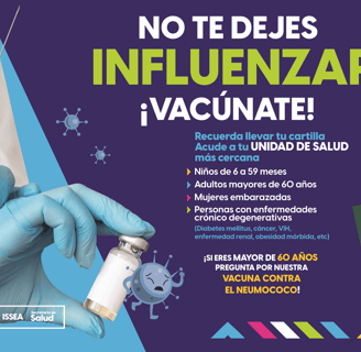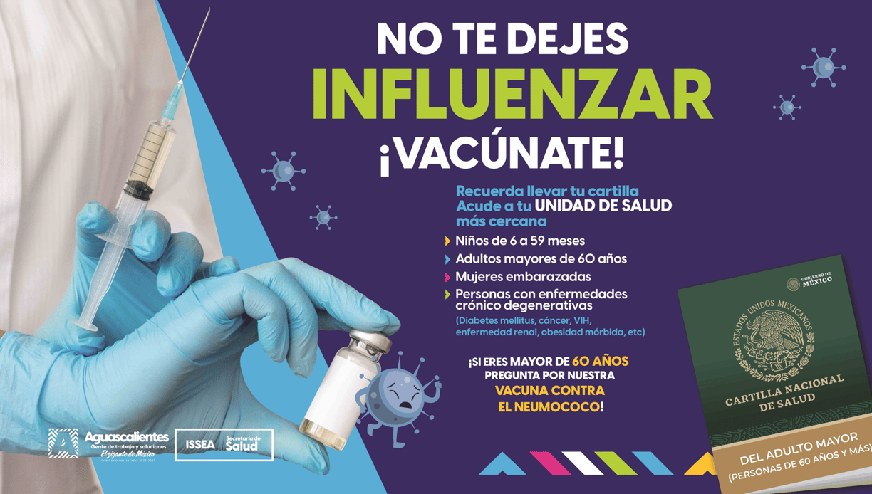 Únete a la campaña de vacunación contra la influenza y el neumococo promovida por la Secretaría de Salud del Estado (ISSEA) en Aguascalientes. En esta temporada de frío, es crucial protegerse contra la influenza, especialmente para los grupos de riesgo como niños menores de cinco años, adultos mayores de 60 años, mujeres embarazadas y personas con enfermedades crónico-degenerativas. La vacunación no solo reduce la posibilidad de contraer la enfermedad, sino que también contribuye a la inmunidad colectiva y disminuye el riesgo de complicaciones graves. Visita tu Centro de Salud más cercano de 9:00 a 13:00 horas para recibir tu vacuna. Recuerda que la influenza es una enfermedad respiratoria contagiosa con síntomas como fiebre, tos y fatiga, por lo que es importante buscar atención médica si presentas alguno de estos síntomas. Además, los adultos mayores de 60 años también pueden recibir la vacuna contra el neumococo para prevenir la neumonía. ¡Vacúnate hoy para proteger tu salud y la de tus seres queridos!