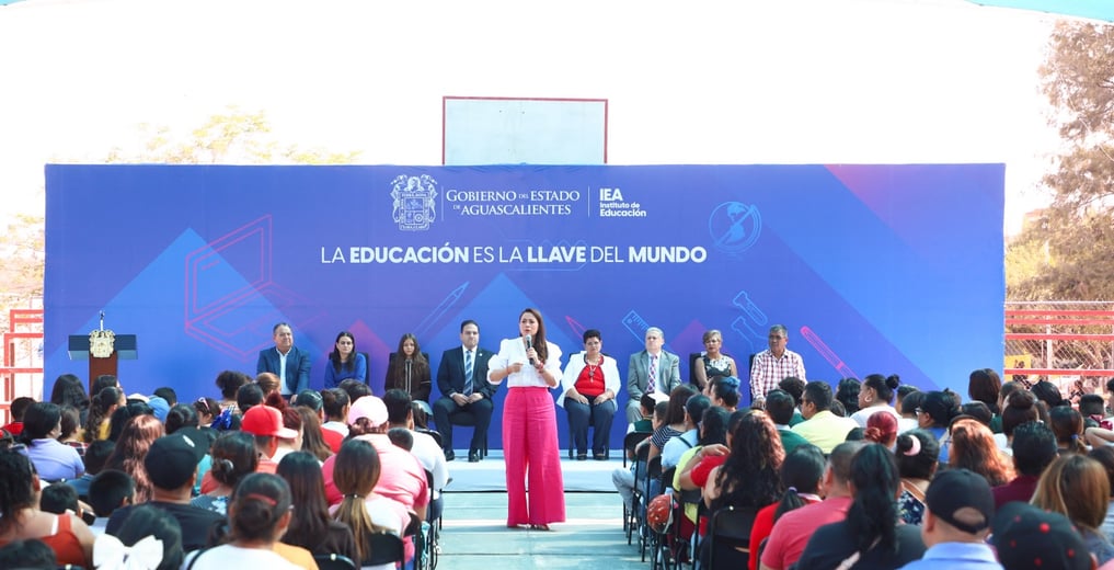 La gobernadora de Aguascalientes, Tere Jiménez, visitó la Escuela Secundaria Técnica No. 34 Frida Kahlo Calderón, en la colonia Pintores Mexicanos al oriente de la ciudad. Durante su visita, motivó a los estudiantes a seguir estudiando para construir un Aguascalientes mejor entre todos. Jiménez hizo hincapié en la importancia de la educación, diciendo que es el legado más valioso que se puede dejar a los niños y niñas. Afirmó que vale la pena seguir luchando porque la educación realmente puede cambiar el futuro de las familias. Además, pidió a los padres, madres y a toda la comunidad escolar que trabajen juntos para cuidar los recursos naturales de Aguascalientes, especialmente el agua. Comentó que este año se instalará infraestructura hidráulica en la colonia, incluyendo tanques elevados para asegurar el acceso al agua. Sin embargo, destacó que estos esfuerzos solo serán efectivos si la comunidad colabora en el cuidado de este recurso esencial. Jiménez explicó que traerán agua a la colonia desde El Conejal, pero necesita que todos se comprometan a cuidarla. Mencionó que el ser humano está usando más agua de la que tenemos disponible, así que es fundamental que cada uno haga su parte en casa para usar este recurso de manera eficiente y sin desperdiciarlo. La directora de la escuela, Virginia Muñoz Martínez, agradeció en nombre de toda la comunidad estudiantil el compromiso constante de Tere Jiménez con la juventud de Aguascalientes. Agradeció el apoyo a los estudiantes y la prioridad que se le da a la educación. En el evento también estuvieron presentes autoridades municipales y estatales, diputados locales, personal administrativo y docente, así como padres de familia y estudiantes de secundaria.