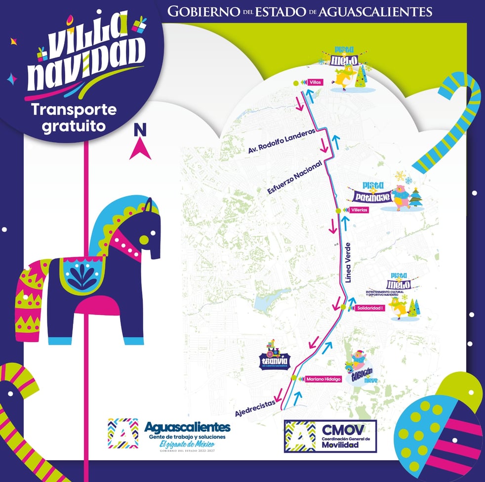 La Coordinación General de Movilidad (CMOV) ha anunciado el lanzamiento del servicio temporal de transporte gratuito "YoVoy a Villa Navidad", que estará disponible del 16 de diciembre al 1 de enero. Este servicio conectará las cuatro sedes del evento navideño a lo largo de la Línea Verde, permitiendo a las familias del oriente de la ciudad acceder fácilmente a atracciones como la pista de hielo y el tobogán de nieve artificial. Los recorridos se llevarán a cabo diariamente de 13:00 a 21:30 horas, y los usuarios podrán abordar las unidades identificadas con el nombre "Villa Navidad" y la imagen oficial del evento en el parabrisas. Esta iniciativa responde al compromiso de la gobernadora Tere Jiménez de garantizar que la mayoría de las familias puedan disfrutar de las festividades navideñas en Aguascalientes.